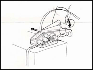 6. Depress the tension lever to cut the strap, with the tension lever depress pivot the tool to the right, and remove from the completed strap. |